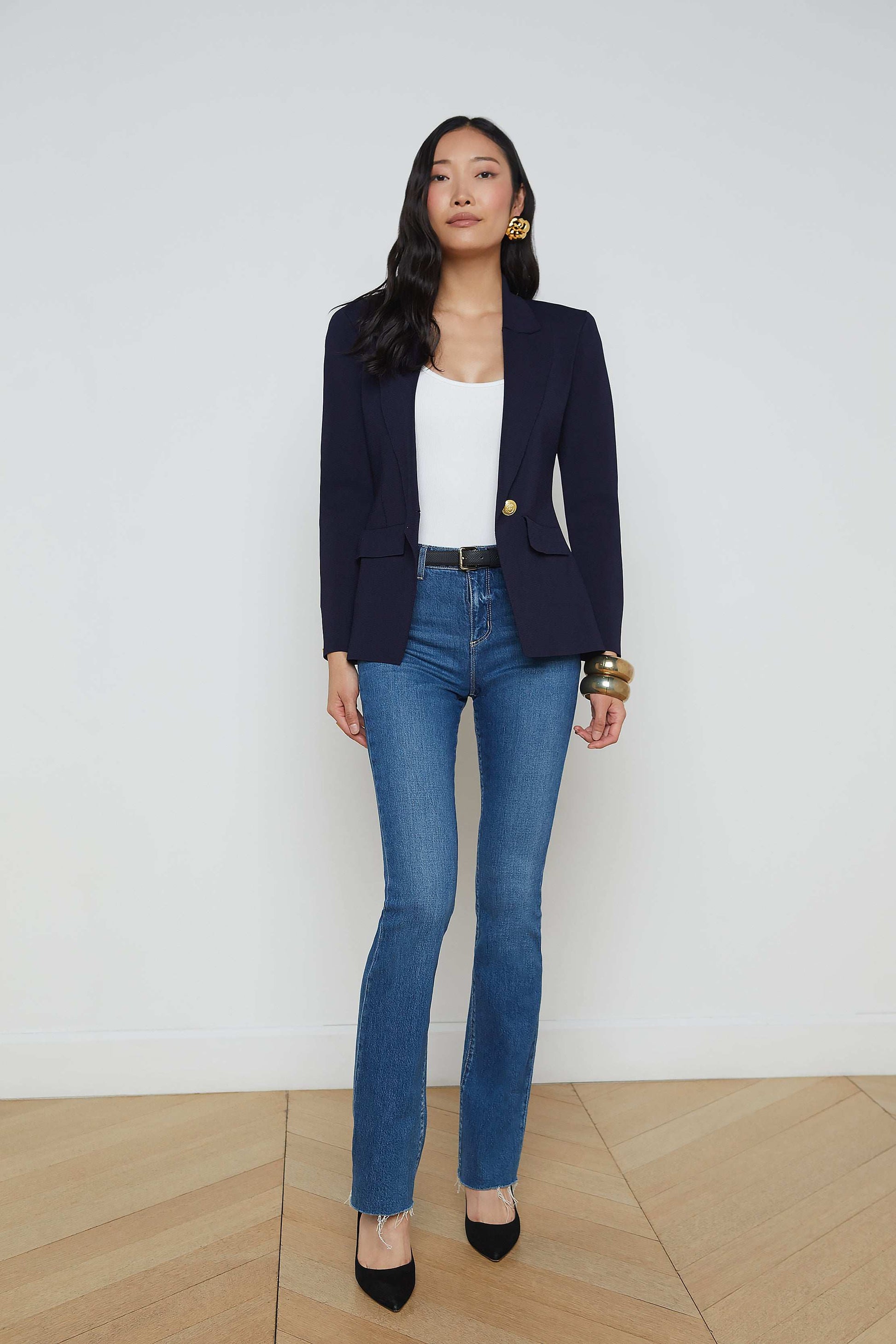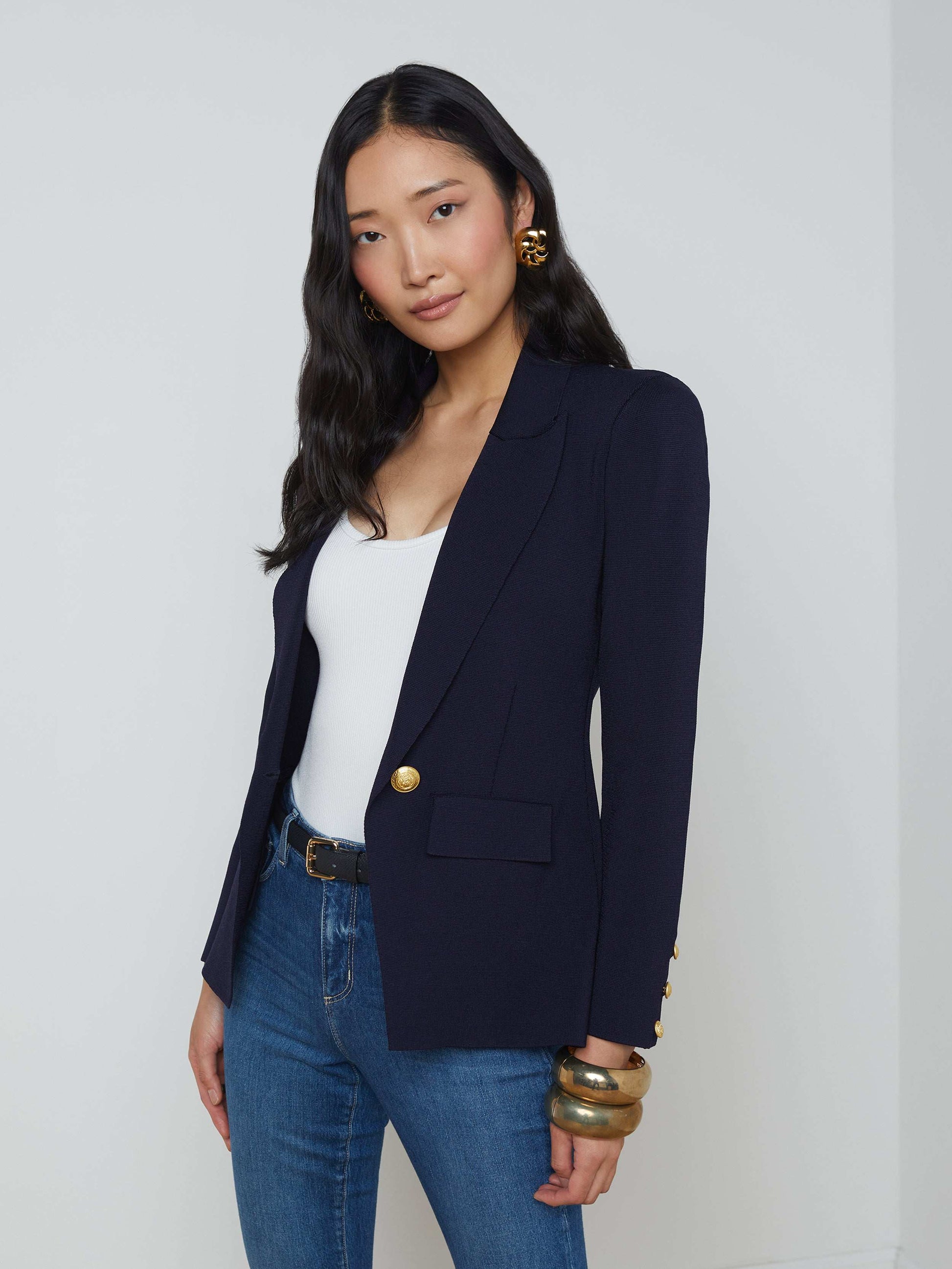The ultimate single-breasted blazer, now in a breathable stretch knit.