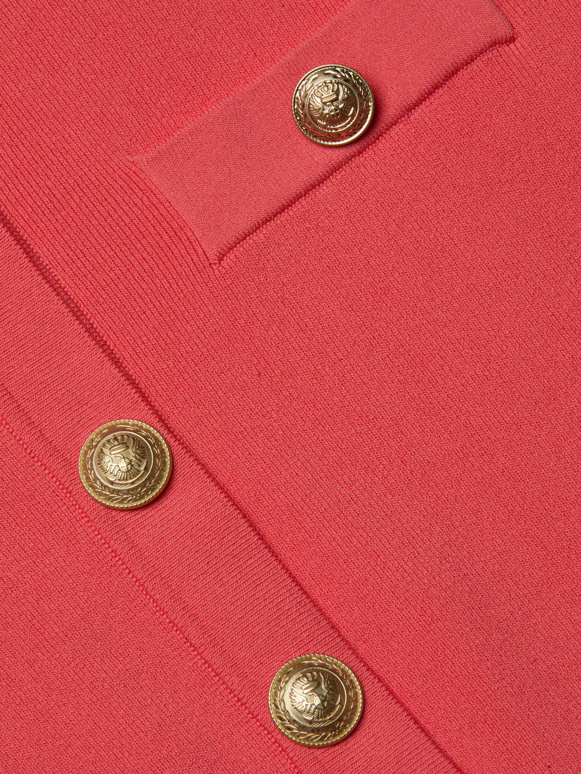 A chic jacket-inspired cardigan, with a Parisian feel. Wear it as a top or second layer all season, every season. Now in coral rose.